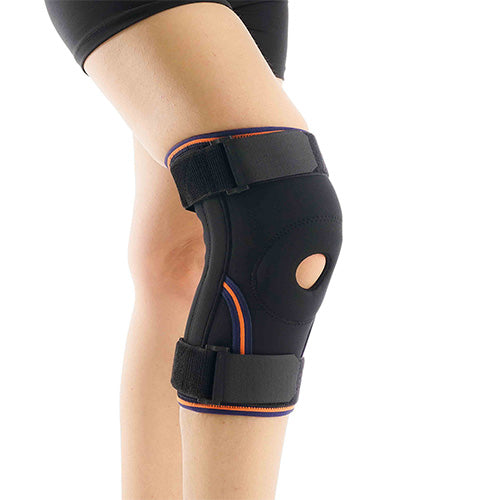 It supports the collateral ligaments of the knee thanks to the flexible underwires on the sides. Its stabilization is quite effective thanks to its structure reinforced with velcro. It is recommended for use in cases of meniscopathy, arthritis-bursitis.