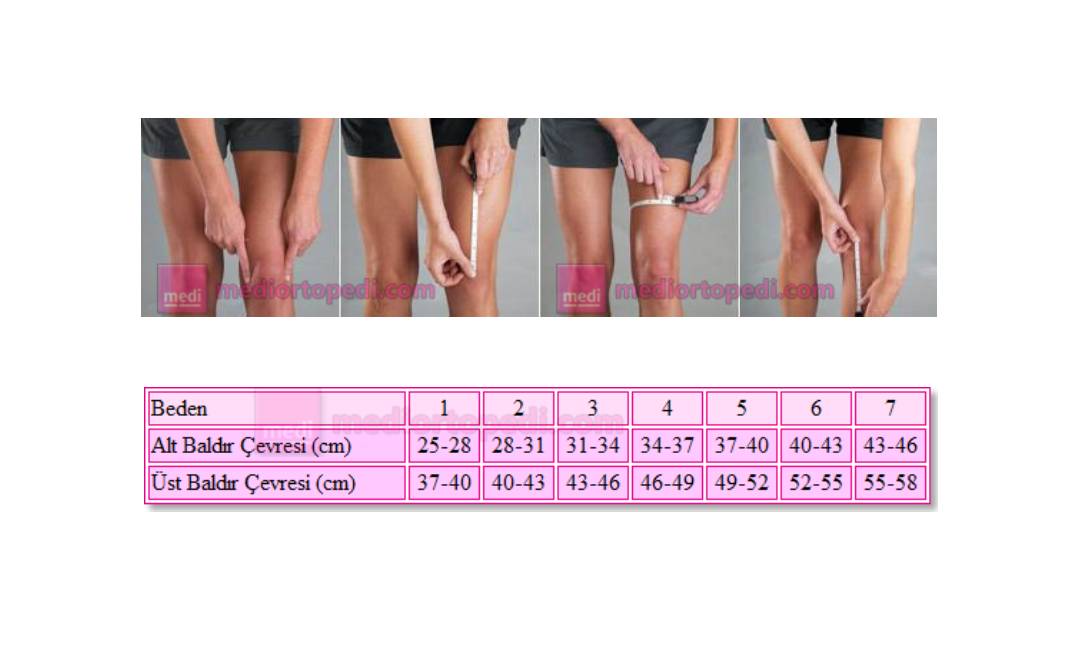 Diz kapağının ortasından 15 cm yukarıya doğru üst baldır çevre ölçüsü alınır.
