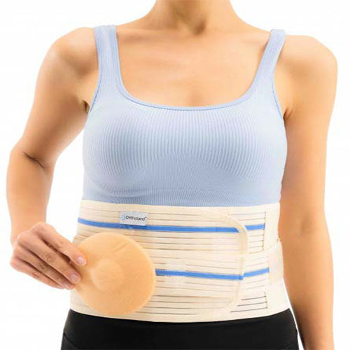It has a removable pad specially designed to push back the herniated tissue. The corset can be adjusted as desired with velcro. It does not interfere with normal daily activities. It is used to prevent recurrences and support recovery after surgery. It can be worn easily under clothing.