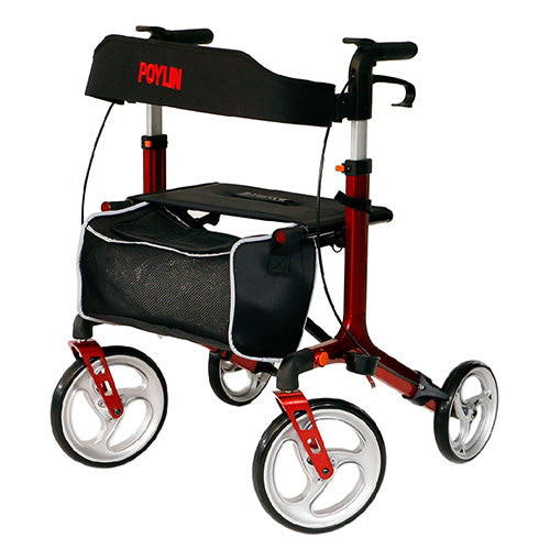 Poylin P888 Luxury Rollator is an extremely durable model with its aluminum structure weighing only 9.10 kilograms. Among the rollator models designed with the highest quality and durability, Poylin P888 wheeled walker is an ideal rollator model for users who have difficulty walking or have difficulty maintaining their balance. Offering extremely comfortable use with its ergonomic hand grips and silicone front and back wheels, Poylin P888 wheeled walker has an adjustable height between 79.5-92 cm. Poylin P888 Luxury Rollator, which allows the user to carry their belongings with it thanks to its large and useful bag on the front, also has a handle for a cane. It allows the user to lock the wheels and sit and rest whenever they want. Therefore, the user can sit and rest whenever they want. Poylin P888 rollator , which can be folded easily, is a model that can fit even the smallest car trunks and is the most notable rollator model with its high quality, comfort and practicality.