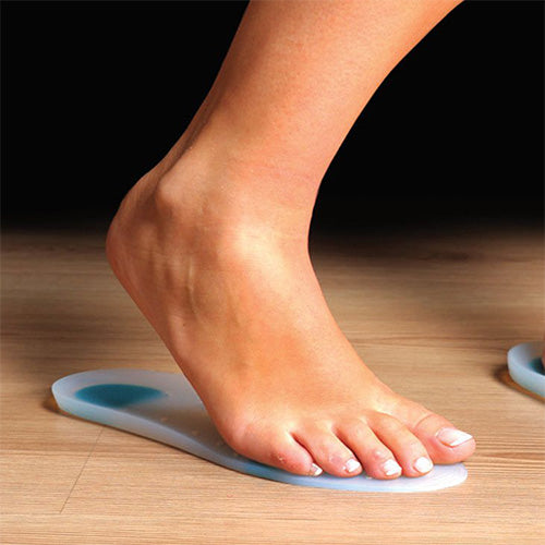 The softer green zone provides additional protection, absorbs impacts and reduces pressure on painful heel and metatarsal areas. The metatarsal dome reduces the stress on the heel of the foot during weight bearing.