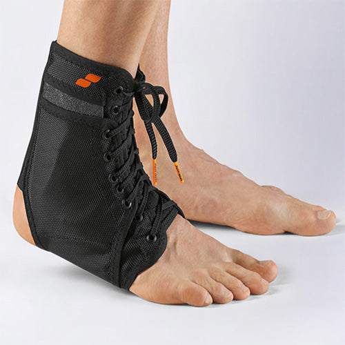 Ankle orthosis with lace-up and lateral reinforcement.